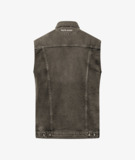 Gilet in denim realizzato in 100% cotone, con doppio taschino sul fronte e tasche laterali. Logo Moto Guzzi ricamato sia sul fronte che sul retro altezza collo. Bottoni in metallo opacizzato.